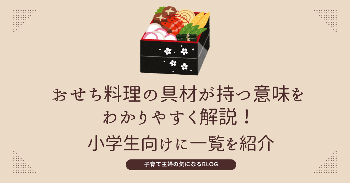 この記事では、おせち料理の具材が持つ「意味」を、小学生の君にもわかりやすく解説するよ。